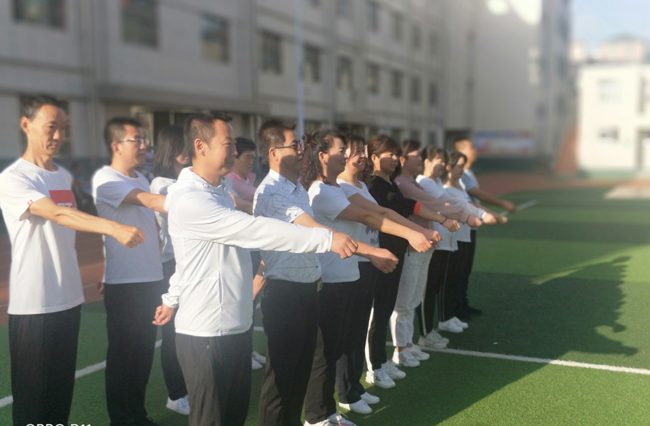 為期一周的“軍訓”很快告一段落。學校行政人員到后操場觀摩體育老師集訓成果,并對本次業務技能練兵活動給予了高度的評價。