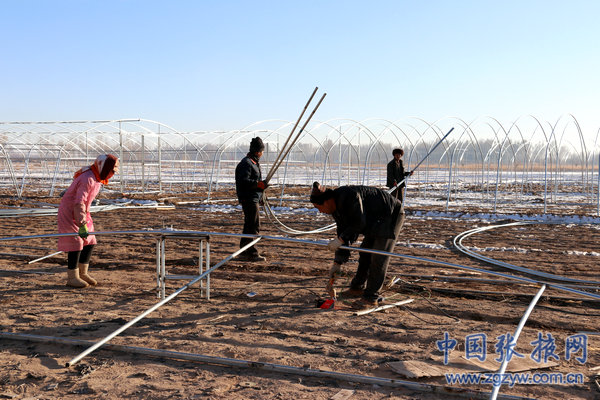 中國張掖網(wǎng)臨澤訊 寒冬時(shí)節(jié),地凍農(nóng)閑,但在臨澤縣蓼泉鎮(zhèn)唐灣村隴園春蔬菜農(nóng)民專業(yè)合作社鋼架拱棚建設(shè)現(xiàn)場卻是一派熱火朝天忙生產(chǎn)的繁忙景象,農(nóng)戶們忙著彎鋼管、搭架、固定鋼架拱棚,新建的鋼屋架大棚星羅棋布……這是該鎮(zhèn)冬季農(nóng)業(yè)生產(chǎn)的一個(gè)縮影。