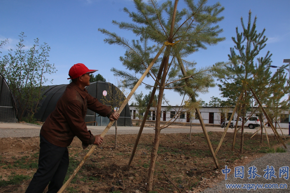 而在食用菌大棚外面,工人宋建喜正在安裝松樹的支架?!拔壹抑兄挥?畝地,還有80歲的父親需要贍養,村上的支部書記和食用菌產業園協調后,招聘我到這務工,日常工作主要是摘蘑菇、打掃衛生和搞綠化,挺輕松的,一個月還有3500元的固定收入?!遍L莊村六社建檔立卡貧困戶宋建喜說。