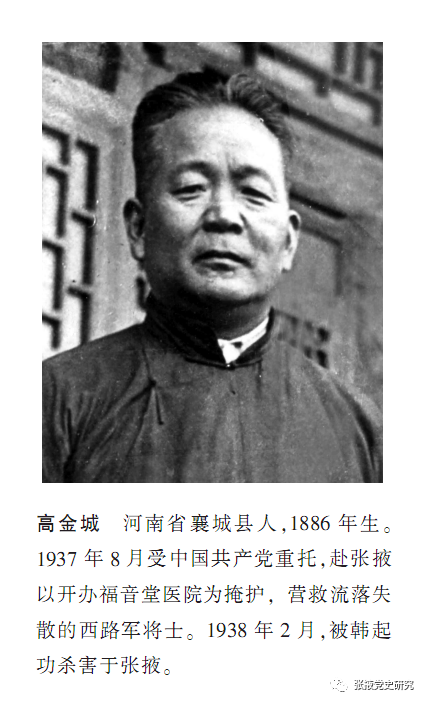 1937年8月,高金城到張掖后,與張掖西路軍秘密黨支部取得聯系。從此,西路軍秘密黨支部的活動轉入有組織、有領導、有計劃、有目的地全面開展營救工作的階段。高金城與韓起功交涉,安排王定國、徐世淑進福音堂醫院當護士,利用看病送藥的機會,出入敵人兵營,搜集情報,傳遞信息。黨支部還復寫了“中國工農紅軍改為八路軍,在蘭州駐有辦事處,地址在蘭州南灘街54號,朱良才同志在那里接應你們”的指示路條,散發給失散各處的紅軍戰士。
