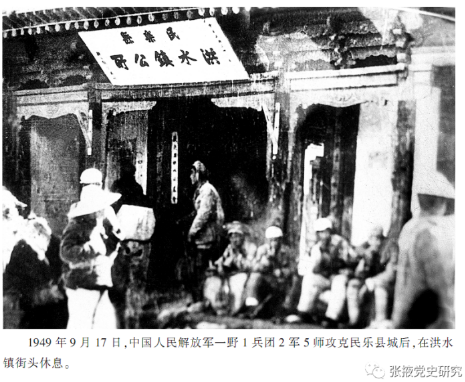 9月9日,1兵團(tuán)司令員王震到達(dá)西寧,宣布1軍留守青海,2軍北進(jìn)張掖,消滅河西之?dāng)常瓿蛇M(jìn)軍新疆的任務(wù)。1兵團(tuán)2軍于9月14日、15日,先后從青海省門源縣出發(fā),向張掖進(jìn)軍。人民解放軍頂風(fēng)冒雪,戰(zhàn)勝嚴(yán)寒,翻越海拔4700多米的祁連山,于9月16日下午走出扁都口,當(dāng)晚宿營(yíng)于炒面莊一帶。