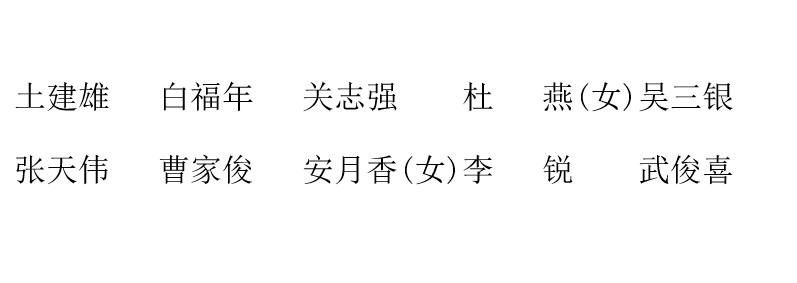 (共10名,以得票多少為序,得票相同的以姓氏筆畫為序)