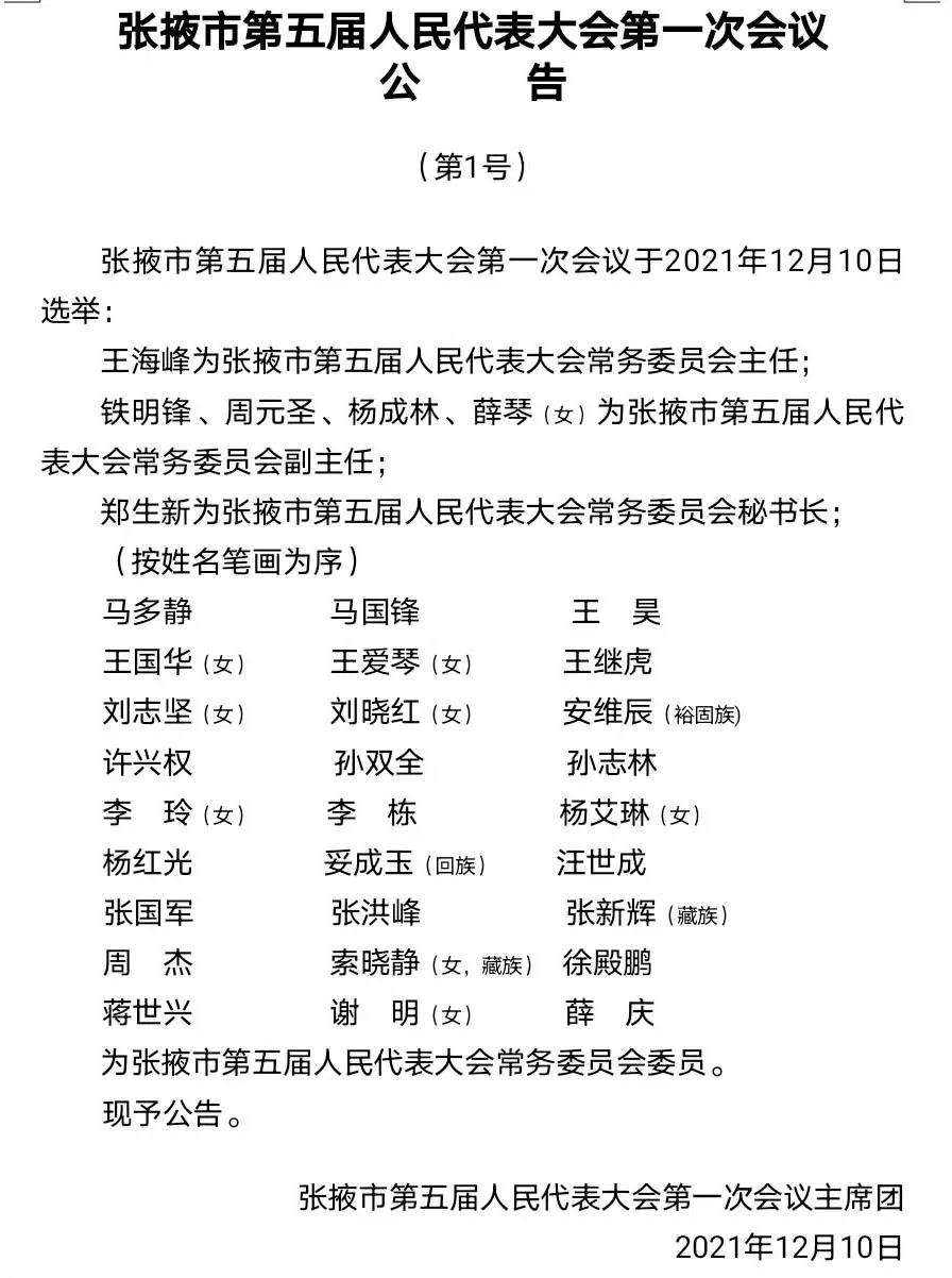【聚焦張掖兩會】張掖市第五屆人民代表大會第一次會議公告