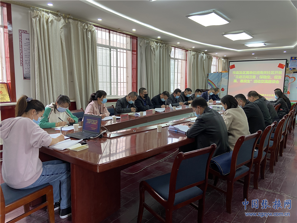 會議傳達學習《張掖市關于開展“三進三問三查,保穩定促發展惠民生”活動的實施方案》和《全市“三進三問三查保穩定促發展惠民生”活動領導小組專責組關于做好“三進三問三查保穩定促發展惠民生”活動進社區工作的通知》。街道和社區負責同志分別介紹了街道和社區基本情況,與會人員圍繞黨組織作用發揮、社區治理、疫情防控、共駐共建、公共服務、文明創建、物業管理、結對幫扶、便民利民、惠民政策落實等方面進行座談交流,認真查找問題,深入分析原因,為下一步扎實推進“三進三問三查”工作理清了思路,明確了重點,細化了舉措。