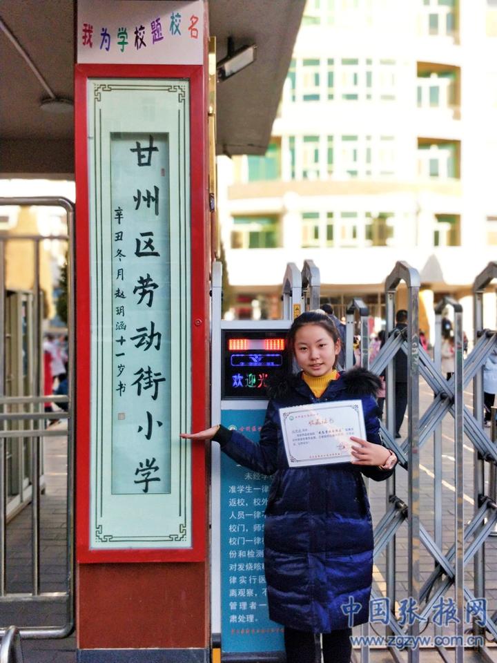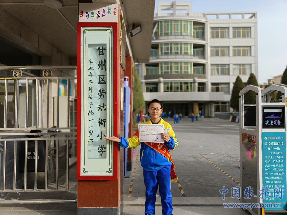 中國(guó)張掖網(wǎng)訊 這幾天,張掖市甘州區(qū)勞動(dòng)街小學(xué)六年級(jí)1班的祁跡同學(xué)每天上下學(xué)時(shí),都會(huì)在學(xué)校門(mén)口駐足一會(huì)兒,原來(lái),學(xué)校門(mén)口掛上了自己書(shū)寫(xiě)的“甘州區(qū)勞動(dòng)街小學(xué)”幾個(gè)大字,祁跡很是開(kāi)心:“這是一件光榮的事,寫(xiě)書(shū)法可以讓我靜下心來(lái),今后我會(huì)繼續(xù)努力練習(xí)的。”