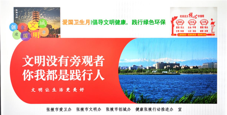 文明健康,你我同行。讓我們積極行動起來,從我做起,從點滴做起,自覺參與“綠色出行”“垃圾分類”“健康樂跑”“文明祭掃”等文明健康綠色實踐活動,把文明健康、綠色環保生活方式融入日常生活中去。個人的力量是渺小的,但匯聚起來的力量無窮的。讓我們一起努力,發揚偉大的抗疫精神,爭做愛國衛生運動的踐行者、文明健康的先行者,凝心聚力,共建幸福美好新張掖!
