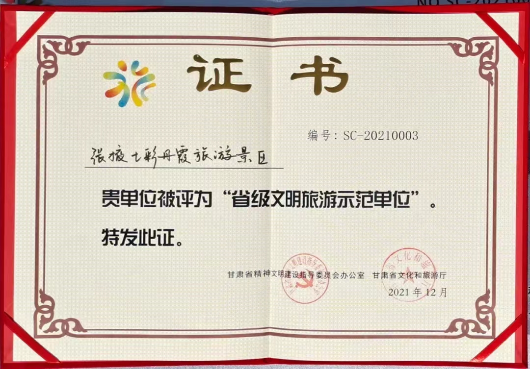 張掖七彩丹霞景區(qū)榮獲“省級文明旅游示范單位”榮譽(yù)稱號