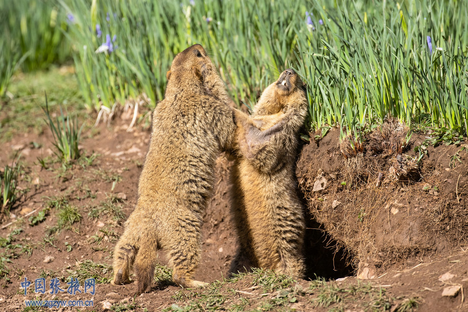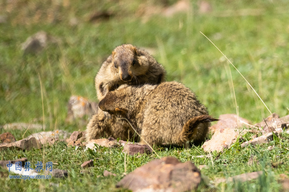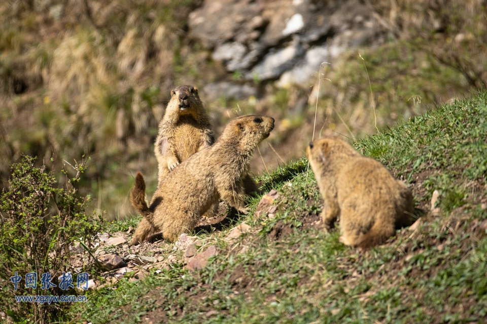中國張掖網(wǎng)訊 祁連山國家公園進(jìn)入夏季以后,喜馬拉雅旱獺清早在山坡上吃著馬蓮花的葉尖,喝著純潔的露水,吃飽喝足后,要么山坡上曬太陽,要么就在草坡上嬉戲“打架”。(吳瑋)