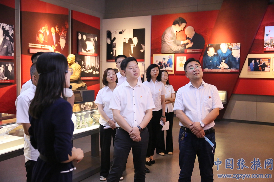 黨員一起參觀艾黎生平紀念館,眾多珍貴的展品講述了路易·艾黎不平凡的一生和他架起的惠及現在的中外友誼之橋的故事。這其中有艾黎上小學時的全勤證書,也有在山丹辦學時國外捐贈給學校的測量工具,這些展品見證了艾黎的成長和奮斗歷史,也見證了他與中共人民建立的深厚友誼。