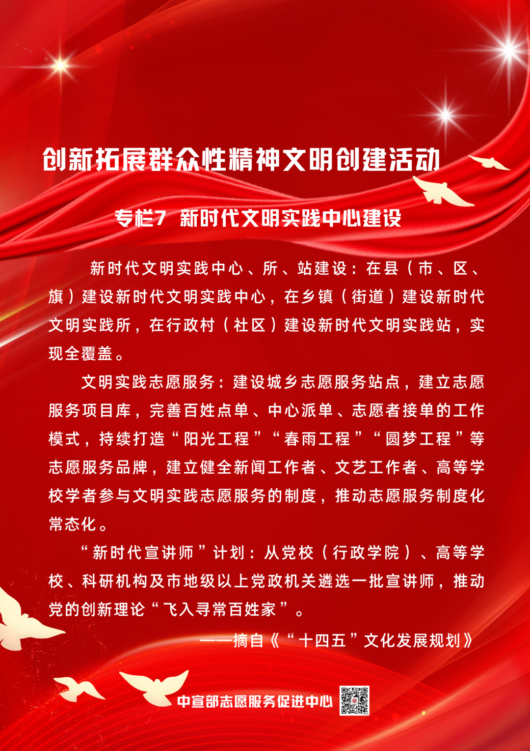 《規(guī)劃》對新時代思想道德建設(shè)和群眾性精神文明創(chuàng)建、新時代文明實(shí)踐和志愿服務(wù)提出了哪些要求?“中國志愿”微信訂閱號和大家一起來看看。