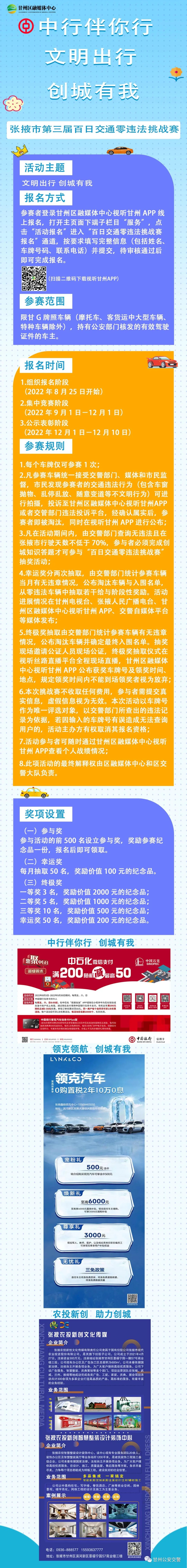 【創城動態】“中行伴你行 文明出行 創城有我”張掖市第三屆百日交通零違法挑戰賽開始報名了