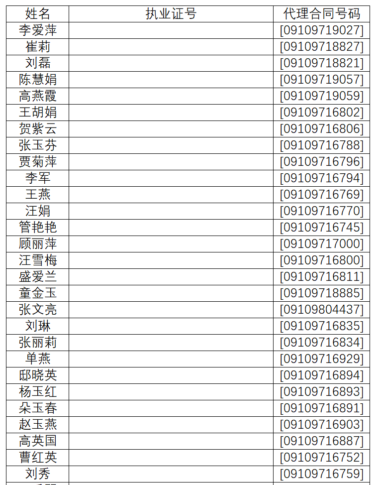 遺失以下人員代理合同: