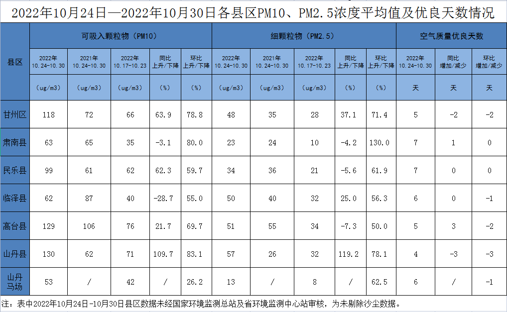 張掖市各縣區空氣質量周報