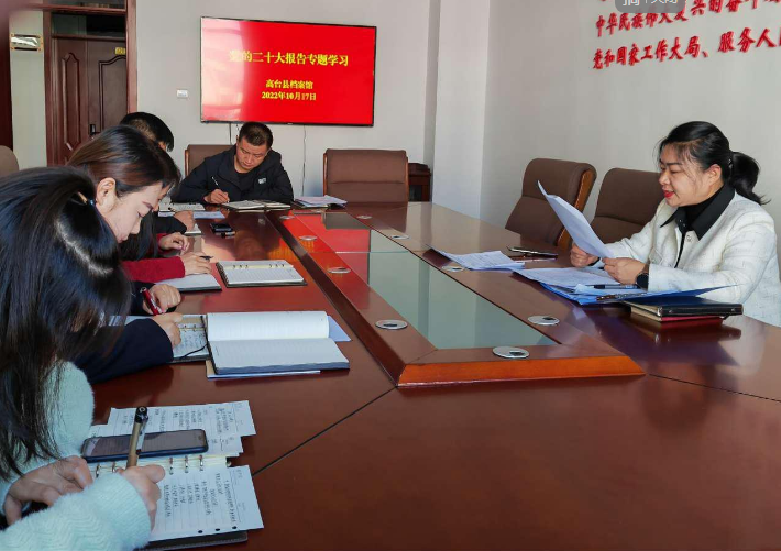 中國張掖網高臺訊 高臺縣檔案館堅持把學習宣傳貫徹黨的二十大精神作為當前和今后一個時期的首要政治任務,制定學習計劃、豐富學習載體,創新方式方法、強化任務落實,堅持在深入學習、廣泛宣傳和狠抓落實上下足功夫,切實推動黨的二十大精神入腦入心、落地生根。