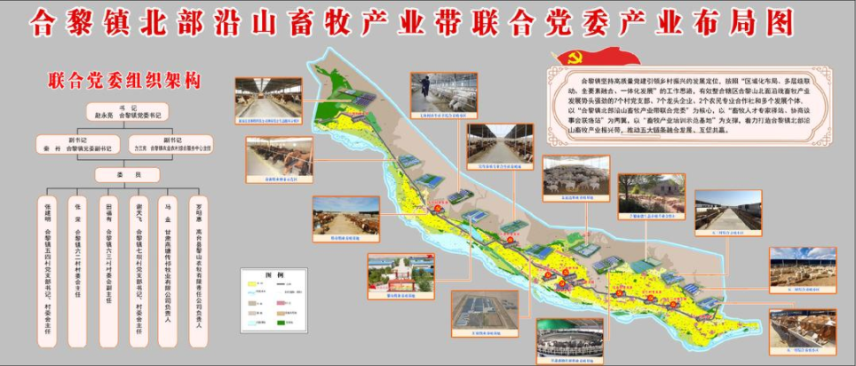深化“三鏈”建設,深挖“北部沿山能人創業示范帶”發展潛能,將鎮內畜牧產業發展勢頭強勁的7個村黨支部、7個畜牧產業龍頭企業、2個農民養殖專業合作社和多個發展個體聯合起來,組建成立合黎鎮北部沿山畜牧產業帶聯合黨委。創新運用聯合黨委“1456”特色工作法,建成以“一核兩站一室一基地”為框架的辦公區域,著力扣緊黨群幫帶責任鏈,實現企業盈利與黨員群眾增收同頻共振。今年以來,健全完善各類制度機制23項,召開聯席會議2場次,跨區域實施項目4個,解決難點堵點問題6個,聯合開展志愿服務活動18場次。