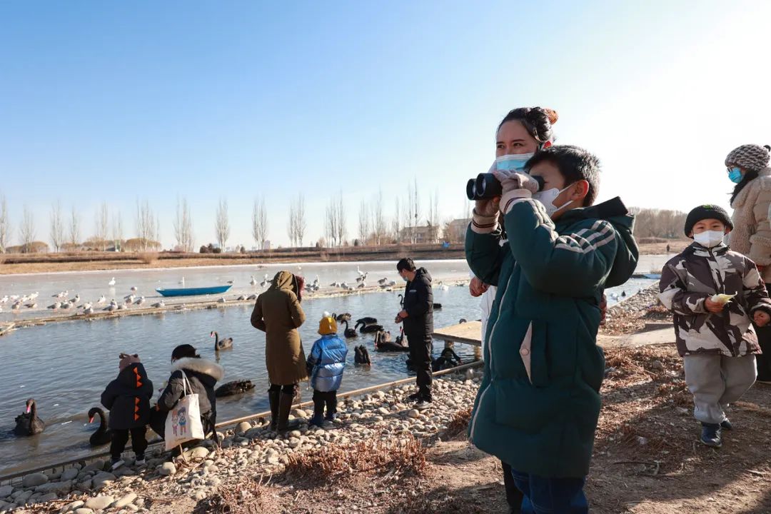 市民張燕和孩子舉起手中的望遠鏡,尋找并觀看候鳥起舞。“好久沒出來玩了,正好元旦假期,帶著孩子前來濕地公園觀看候鳥,讓孩子融入自然,了解自然、愛上自然,并身體力行的保護自然。”張燕說。