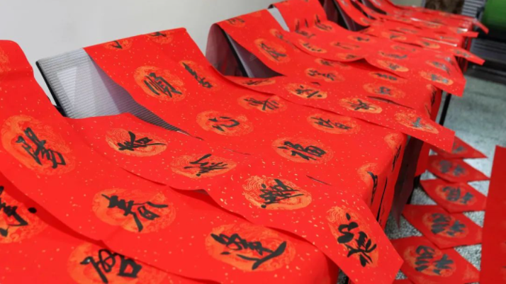 與此同時(shí),肅南縣開(kāi)展了“寫(xiě)對(duì)聯(lián)賀新春”文化惠民活動(dòng),為縣城的居民群眾備上“文化”年貨。在活動(dòng)點(diǎn)上,書(shū)法家正在撰寫(xiě)春聯(lián),一起一落間,一幅幅蒼勁有力、喜慶洋溢、滿載美好祝愿的春聯(lián)躍然紙上,感受到新春的祝福和節(jié)日的喜悅。不一會(huì)兒,一副副散發(fā)著清新墨香的喜慶春聯(lián)鋪滿各個(gè)角落,現(xiàn)場(chǎng)彌漫著濃濃的“年味”。“我們縣文聯(lián)為機(jī)關(guān)單位、社務(wù)居民、駐軍部隊(duì)書(shū)寫(xiě)了八百多幅春聯(lián)和福字,將兔年春節(jié)的美好祝福溢于字里行間,營(yíng)造歡樂(lè)祥和的春節(jié)氣氛。”肅南縣文聯(lián)主席華偉說(shuō)道。