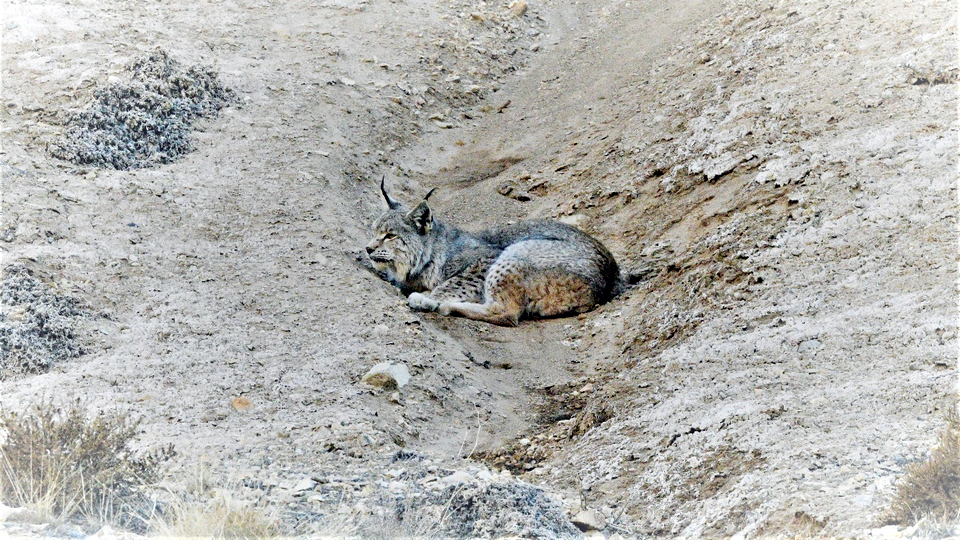 這天,當祁連山國家公園隆暢河保護站的工作人員發現這只猞猁時,它正“躺”在山坡下懶洋洋地曬太陽。猞猁是國家二級野生保護動物。屬于貓科,體型似貓而遠大于貓,體粗壯,尾極短,通常頭不及體長的1/4。四肢粗長而矯健。耳尖生有黑色聳立簇毛。兩頰具有下垂的長毛。上體淺棕、土黃棕、淺灰褐或麻褐色,或為灰白而間雜淺棕色調;腹面淺白、黃白或沙黃色。尾端呈黑色。外形像狼,又叫狼貓。