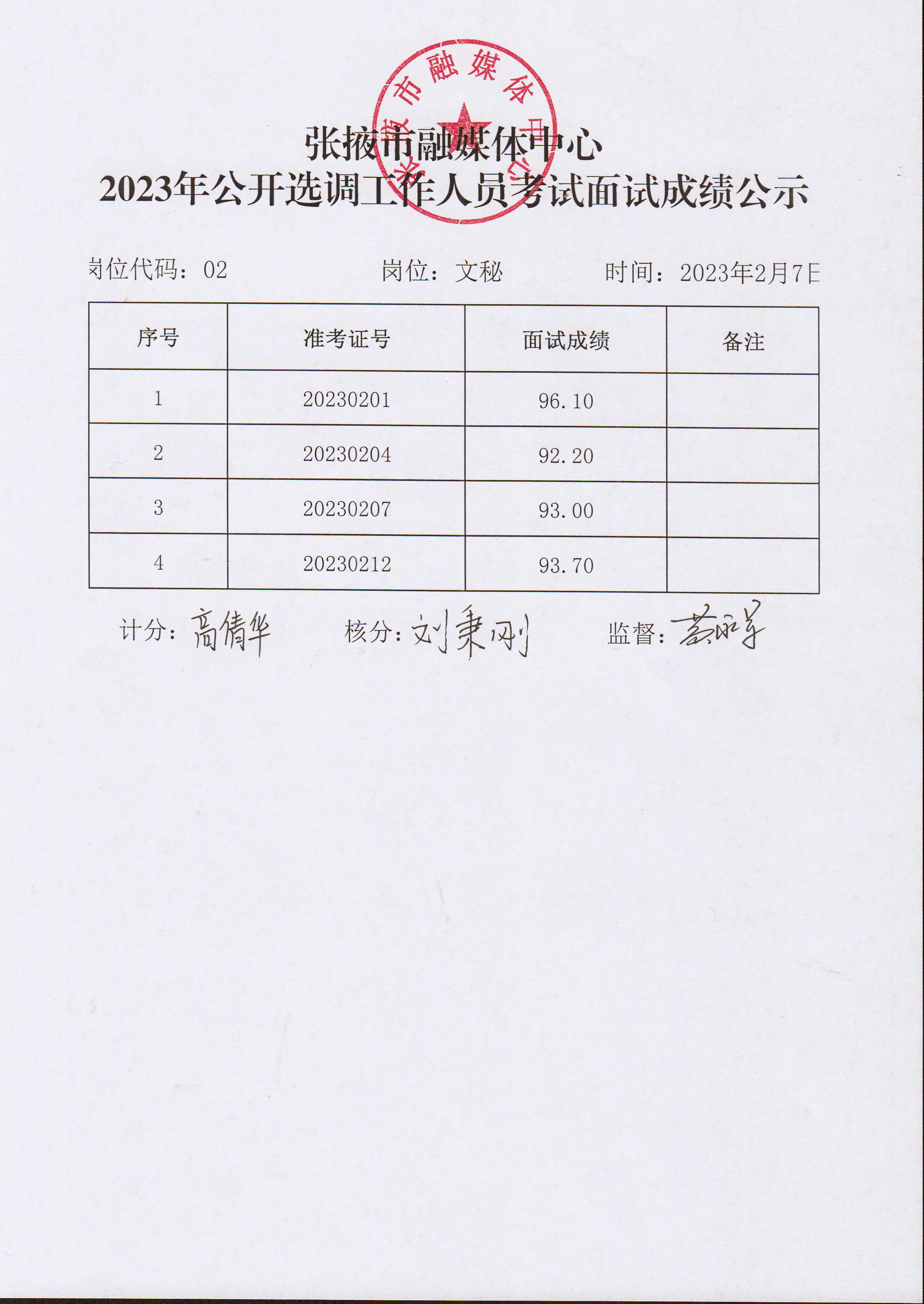 張掖市融媒體中心2023年公開選調工作人員筆試成績公示
