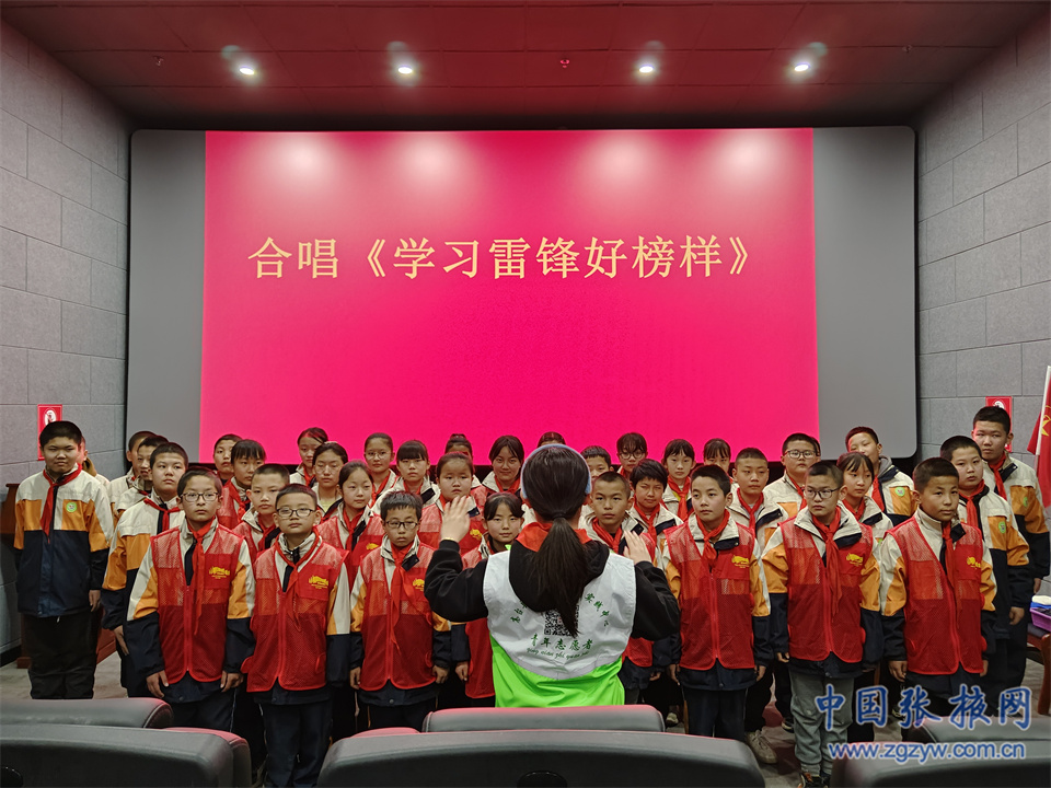 “學習雷鋒好榜樣,忠于革命忠于黨……”現場的小小講解員們共同唱響《學習雷鋒好榜樣》。鏗鏘有力的歌聲在紀念館回響,將胸前的紅領巾襯托得愈發閃亮。