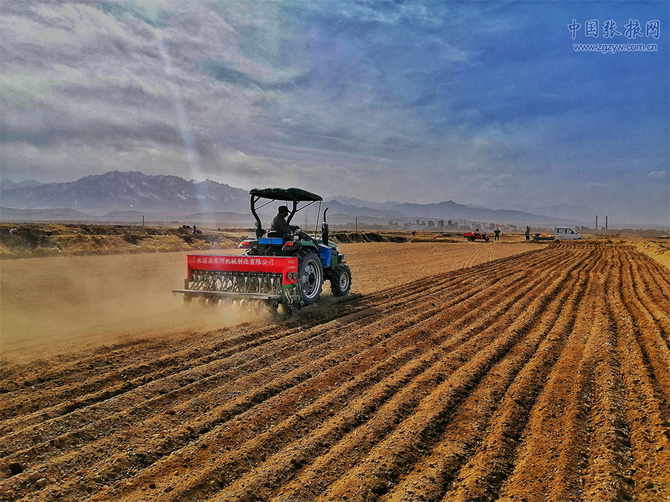 中國張掖網民樂訊 糧安天下,農穩社稷。眼下,正值小麥等糧食作物播種的黃金時期。民樂縣各地農民搶抓農時,做好小麥、玉米等糧食作物的播種工作,田間地頭一派繁忙景象。