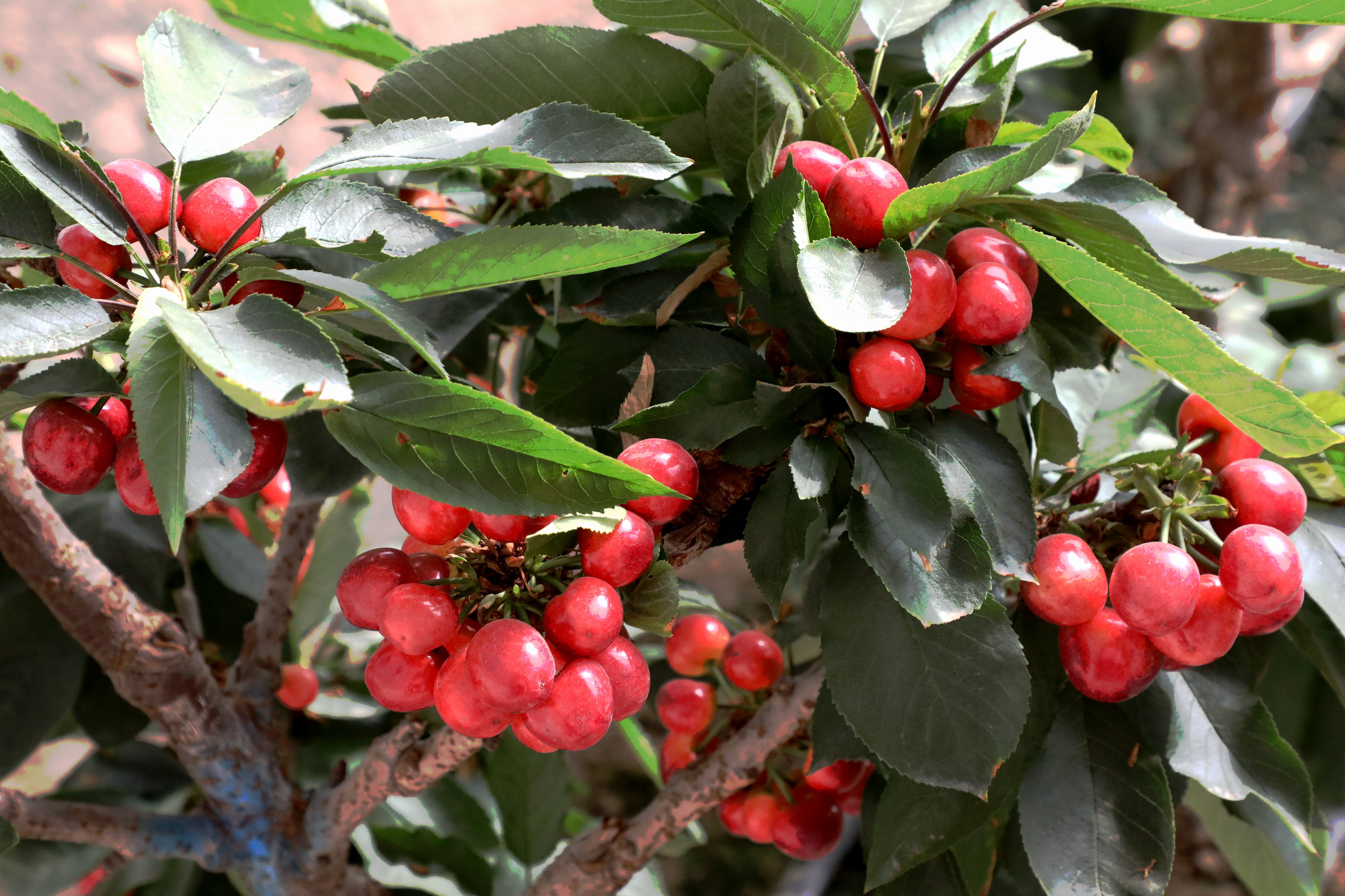 3月24日,記者在櫻桃溫室棚看到,一排排錯落有致的櫻桃樹長勢喜人,綠油油的枝葉彰顯著勃勃生機,顆顆櫻桃掩映在翠綠的枝葉間,一蓬蓬、一簇簇,嬌滴滴、紅艷艷,晶瑩剔透,在綠葉簇擁下顯得格外誘人。