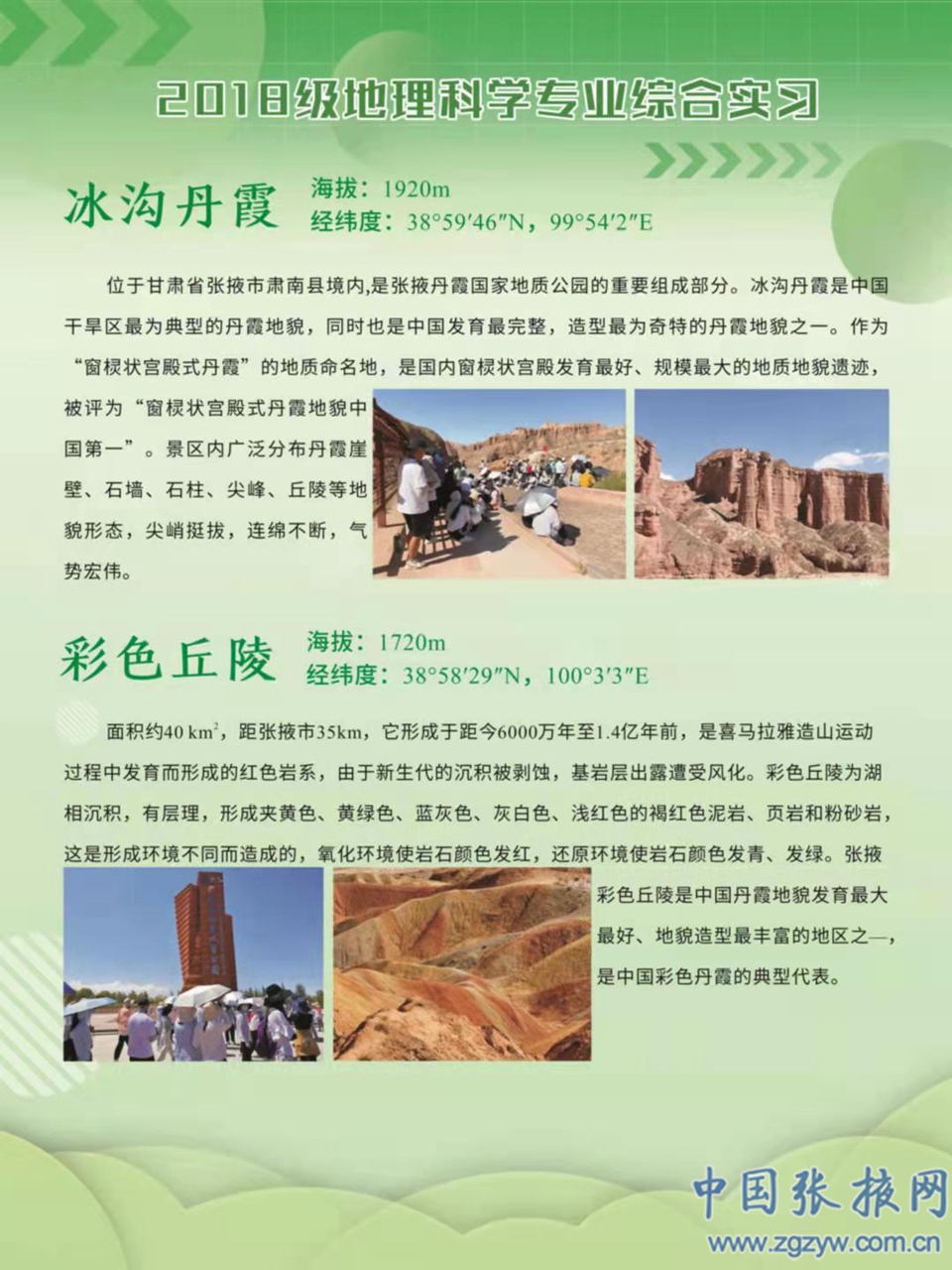 借高校院所之力,豐富公園科學活動。與中國地質大學(北京)、蘭州大學、西北師范大學等高校建立科研科普戰略合作關系,成立了中國地質大學(北京)自然文化研究院張掖分院,發表了碩士畢業論文《張掖地質公園地質遺跡與當地文化遺產關系探討》《張掖地質公園地質遺跡特征及地學旅游對策》,開展了一系列張掖世界地質公園范圍內的野外實習活動,形成一批高質量實習報告,張掖世界地質公園科研活動異彩紛呈。