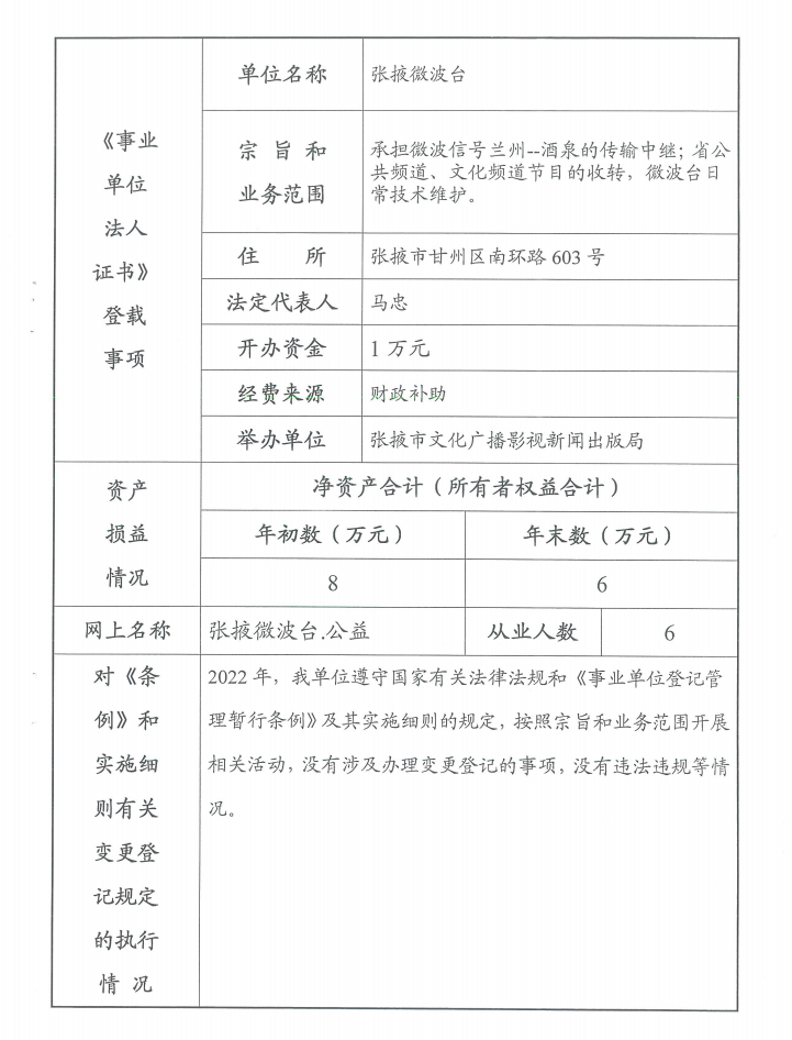 張掖微波臺(tái)2022年度法人年度報(bào)告書