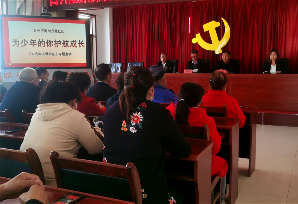 中國張掖網甘州訊 為營造關心、重視未成年人健康成長的良好氛圍,切實增強轄區未成年人法治意識和安全防范意識,全面貫徹落實《未成年人保護法》相關法律條例。近日,甘州區南街丹霞社區召開“為少年的你護航成長”《未成年人保護法》專題宣講會。