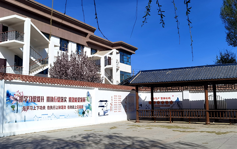 在集鎮廣場圍墻上,一處處生動靚麗的文化墻繪讓人眼前一亮。內容通俗易懂、新穎獨特、群眾喜聞樂見,繪就著黨的方針政策,傳遞著文明鄉村風貌,各種生動形象的畫面交織在一起,形成為了一道靚麗的風景線。一幅幅有特色、有高度、有內涵的主題文化墻,不僅美化了村容村貌,更傳遞了文明新風尚,讓村民們在潛移默化中受到啟發教育,身體力行參與鄉村振興。