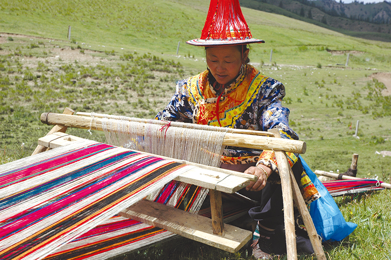 裕固族先民以游牧為主要生產方式,所需的絕大部分生活資料都來源于牲畜和畜產品,從而形成了以牛、羊、駝毛為主要材料制作帳篷、衣服、鞋襪、褡褳等日常生產生活用具的織褐子習俗。織褐子的主要材料是牛、羊、駝毛捻成的毛線,經染色處理后,用專用的木制器具織制。操作簡便,男女老少都可操作,但所需場地要求較大,一般在夏季氣溫較暖和、牧閑時候才會制作。這種褐子制品瓷實、耐用,使用廣泛。織褐子反映了裕固族逐水草而遷徙的游牧生活,保護及傳承織褐子對于研究裕固族的畜牧業經濟發展史、服裝服飾發展史和生產生活習俗都具有重要的價值。隨著社會的發展和生活水平的提高,褐子制品因其制作過程過于原始,使用范圍越來越少,替代品越來越多而逐步趨于消亡。即使有個別老年人保留了其制作工具和手藝,也是作為紀念,其真正用途已無法發揮。 2011年3月16日,裕固族織褐子被甘肅省人民政府列入第三批甘肅省非物質文化遺產代表性項目名錄。