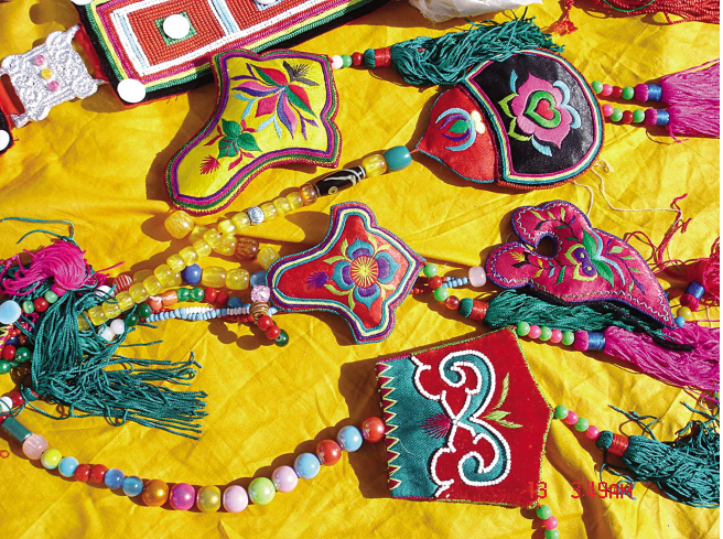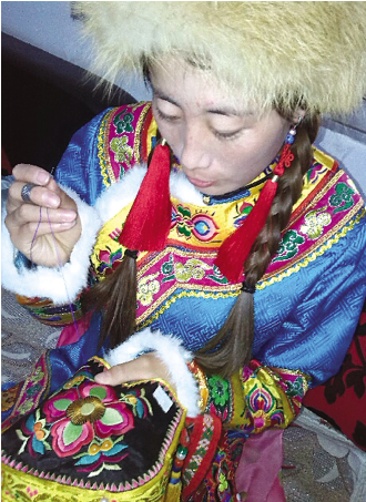裕固族刺繡主要分布在祁連山北麓的肅南裕固族自治縣明花鄉、大河鄉、康樂鄉及皇城鎮的馬營、東灘、北灘。裕固族的刺繡工藝在民族工藝和審美情趣中隱喻著很深的文化內涵,充分體現了裕固族人追求美的心理需求。裕固族刺繡工藝就其色彩、花樣、用途而言千差萬別、千姿百態,既符合風俗習慣,審美心態,也是生活情趣的再現。裕固族刺繡是裕固族生產生活中一個非常重要的輔助性、裝飾性手工藝術,它在吸納了中國四大名繡和藏族、蒙古族等民間刺繡精華的基礎上,逐漸形成了自己獨特的風格和完整的藝術體系,具有濃郁的地方特色和民族氣息。其主要特點是內容豐富,多以人物、花草、鳥獸、傳統裝飾圖案及十二生肖等為主;構圖嚴謹,講究圖案的對稱和自然流暢;針法多樣并注重運用剪絨、打結、鎖邊、圈金、打眼等輔助工序;色彩艷麗明快,但又樸素大方,主要用于服飾裝飾、日常生活用品裝飾。裕固族刺繡藝術來源于他們的生活,來源于他們自身,與他們的物質生產生活方式有著密不可分的聯系。作為藝術品,既表現了藏傳佛教的宗教信仰,又具有西部游牧民族的特色,也具有裕固族獨特的文化元素,在中華民族文化寶庫中占有一定的地位。 2013年,裕固族刺繡被甘肅省人民政府列入第三批甘肅省非物質文化遺產保護名錄。