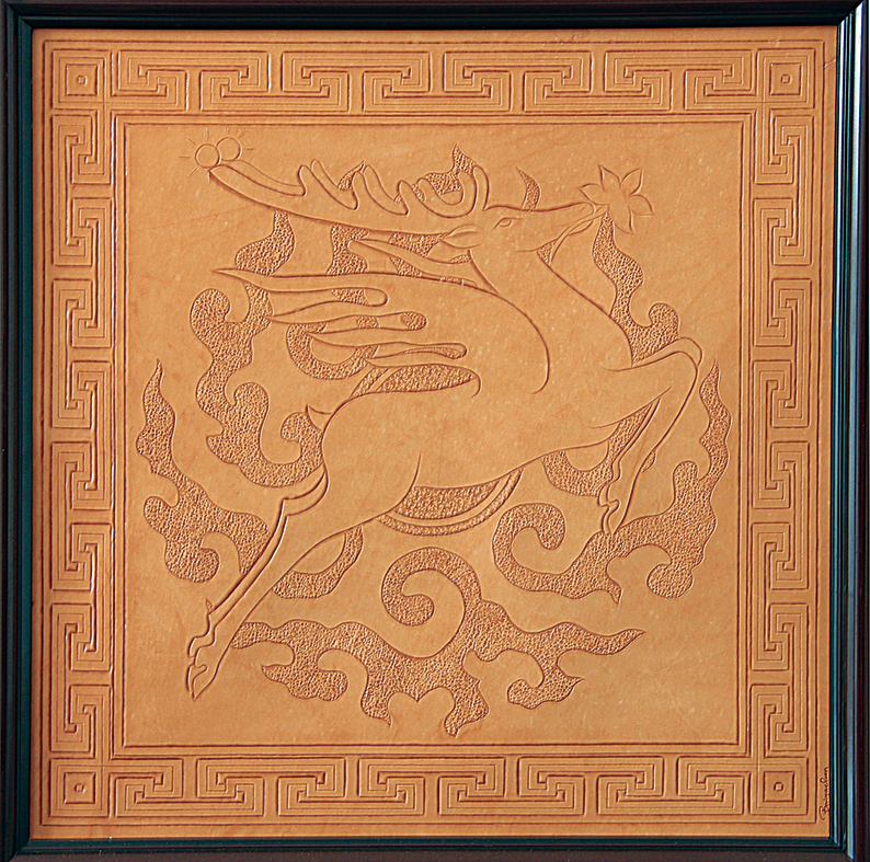 裕固族以畜牧業生產為主,生產、生活用具大部分來自畜產品,作為生產生活用具裝飾的皮雕,是生產生活習俗與審美觀結合的產物,也是裕固族畜牧生活的重要反映。作為藝術品的皮雕,與他們的精神生活、宗教信仰有著密切的關聯,既有西部游牧民族的共同特色,又具有本民族的自身特色,在裕固族文化藝術中占有一定的地位,是裕固族傳統手工藝的一項重要內容。皮雕圖案豐富多彩,紋飾優美流暢,風格粗獷豪放,給裕固族的游牧生活增添了活躍的氣氛和高貴的氣質。其原料以牲畜皮和獸皮為主,以陽雕、鏤空、剪切、繪畫等為主要手法,涂以色彩加以裝飾后用于工藝畫、馬鞍、皮靴、刀鞘、皮袋等皮制生活生產用具的裝飾。皮雕藝術已基本失傳,目前只有白亞群一位藝人從事皮雕工藝品的制作,瀕危狀況十分嚴重。 2008年6月13日,裕固族皮雕技藝被甘肅省人民政府列入第二批甘肅省非物質文化遺產代表性項目名錄。保護單位:張掖市肅南縣裕固族文化研究室。
