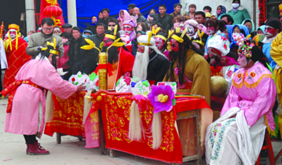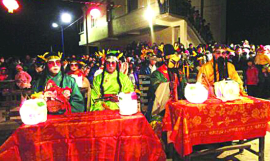 八仙燈會戲流傳于民樂縣豐樂鄉雙營村,是傳統的地方特色戲劇。該戲劇融合了地方特色戲劇表演與新春燈會,既有戲劇的表演特征,又具燈會的特點,形式獨特,別具一格,在西北地區極為罕見。八仙燈會戲由雙營村清代光緒時期的秀才何文楊始創,他以畢生精力創編了體裁獨特的八仙燈會戲劇本。其后,他的同族后代何永集又對八仙燈會戲劇本作了補充修改,至清同治八年(1869年)完成了八仙燈會戲的全部創作,于清光緒二十一年(1895年)正式上演。此后,每逢三年在元宵節期間演出。由于各種原因,劇本始終密不外傳,以至于后來劇本失落,只能口口相傳。中華人民共和國成立后,劇本都是由一代一代演職人員以口相授,世代沿襲。八仙燈會戲吸取儒、釋、道思想精華,選取人們熟知的八仙神話題材,借八仙之口,宣揚儒家的仁愛孝悌、佛家的因果輪回、道家的修心養性等思想,勸導世人修身仁愛、愛國愛家,思想內容豐富,寓意深刻。劇情分為王母上壽、八仙慶壽、天官賜福、香姑受封和達摩請神、劉海撒金錢兩個引子。在表演過程中,飾演八仙、童子、壽星、天官、王母等角色的所有演員在唱、念等表演中都要手持一盞手工制作的花燈,使戲劇表演錦上添花、絢爛奪目。在配樂上,采用當地人們喜歡的道情曲調,樂器以嗩吶為主,輔以板胡、二胡、笛子、古箏、樂鼓、銅鑼等,充分體現出本土特色。該劇演出規模大,參與人數眾多,演出場地需要在較為寬敞的廣場區域,不設舞臺,文武樂隊伴奏隨同左右,觀眾在周圍觀看。由于是三年演出一次,每次演出時,許多人早早等候,現場人山人海,場面極為熱鬧。觀眾一方面觀看燈會戲劇的熱鬧表演,另一方面競相請一個戲中八仙表演使用的燈籠掛在家中,以圖新的一年風調雨順、國泰民安、家庭幸福美滿。八仙燈會戲思想內容豐富,表演形式獨特,藝術感染力較強,自始至終貫穿著愛國敬孝、誠信友善、尊老愛幼、扶貧濟困、扶弱助殘、寬容禮讓等教化人心的精神和思想,反映了中華民族的傳統美德,表達了人民群眾祈盼社會和諧、國泰民安的美好愿望,深受廣大群眾喜愛。春節、元宵節燈展也是八仙燈會戲的重要組成部分,結合演出活動,將張燈、舞燈、觀燈、賞燈等活動穿插其中。正月十三上燈,十四試燈,十五展燈,十八落燈,整個活動才落下帷幕。 2015年8月13日,八仙燈會被張掖市人民政府列入張掖市第三批市級非物質文化遺產代表性項目名錄。保護單位:張掖市民樂縣文化館。