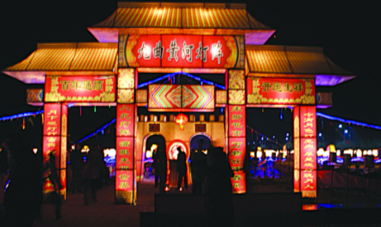高臺黃河燈陣全稱為“九宮八卦黃河陣”,又叫“九曲黃河陣”或“燈桿會”。自明清以來,高臺縣較大的堡子每年正月十三到正月十六都有黃河燈陣,主要是為了當地百姓求吉祥求平安,寄托美好祝愿。從正月十一日就開始著手準備,并且這一天在燈場中心立一根高8米的木柱,稱之為“立大桅”。在“大桅”的頂端高掛“混元金斗”燈,掛一塊6.4米長的黃布,稱“杏黃大旗”,在大桅下面設置中央祭臺,擺放趙公明(財神爺)畫像或塑像,放置香爐、香表之類,擺一功德箱,設一中堂,有燈官坐堂,兩班衙役(當地群眾扮演)跟隨,人們在此祈求幸福安康、五谷豐登。在祈福時,要跪拜燈官老爺,燈官老爺口念祝頌語,賜福于跪拜者;然后由兩班衙役手持水火棍在跪拜者身上輕輕擊打,同齡熟人之間故意打得較重,以逗笑取樂,同時口念“一打國泰民安,二打風調雨順,三打長命百歲,四打大吉大利”等祝福語。正月十三晚上,在大桅四周按21行、21列呈正方形栽植木桿,并拔去中央9個,以留出中央祭臺的位置,木桿高1.2米,共432根,行距、株距視場地大小而定,用繩子將這些木桿連接起來,繩上粘貼彩紙小旗,形成一個迷宮般的燈陣。每個木桿頂端放一塊20厘米見方的小木板,小木板四周糊上15厘米寬的一圈彩紙,再貼上各種窗花圖案,叫作燈帽子。在燈帽子中心放一盞由面粉捏成的小油燈,添上清油,放上捻子。一般燈桿、燈帽、面燈都是本村老百姓自發捐來的,面燈都是蒸熟的。關于點花燈,還有一些傳統,即“正月十三是白燈,正月十四半場子燈,十五、十六是全燈”。具體做法是:正月十三晚上,只點燃中間大桅上的主燈和四角木柱上的幾盞燈;正月十四晚上,點燃中央主燈和八個方位上的一部分燈;正月十五、十六晚上點燃所有的燈。四角四燈柱高掛燈串,四周全用紅燈圍起,不得隨意入內,每陣中央設置黃色燈籠提示游人慢行。目前,高臺黃河燈陣主要在黑泉鄉鎮江村沿襲傳承。此外,合黎鄉五三村也有“卍”字燈陣,布陣方法有所不同,在四角及中央的木柱上分別書寫“東方甲乙木星之神位、南方丙丁火星之神位、中央戊己土星之神位、西方庚辛金星之神位、北方壬癸水星之神位”。在該縣黑泉鄉定平村(原稱大寧堡)堡內西北角原有一“燈架灣”,中立大桅常年不撤,因而得名。 2011年3月16日,高臺黃河燈陣被甘肅省人民政府列入第三批甘肅省非物質文化遺產代表性項目名錄。保護單位:張掖市高臺縣文化館。