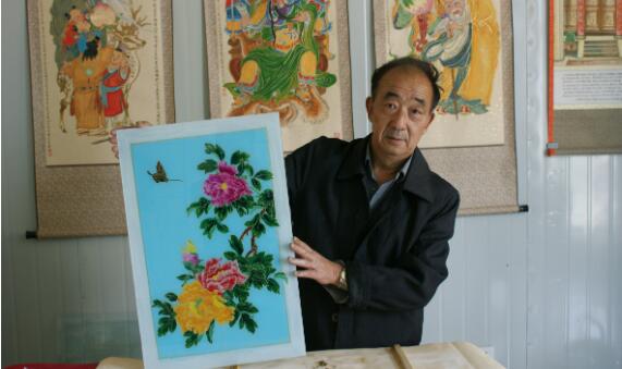 高臺雕彩玻璃畫是與制鏡技術相結合的傳統工藝畫,在制鏡生產過程中作為制鏡裝飾,因其制作方法特殊也成為一種獨立的畫種。制作工序如下:一是清洗玻璃涂蠟液。以水清洗,擦凈玻璃。熬煉石蠟溶液,根據季節,冬季加適量甘油軟化,夏季只加硬脂酸,將熬制好的蠟液用毛刷均勻地涂刷于玻璃表面。二是雕畫線條及蝕刻。將涂刷蠟液干燥后的工作面置于圖案墨稿上,按照畫稿的要求,用粗細不同的竹筆雕畫圖案的造型線條,邊雕邊用干凈軟毛刷掃清工作面的蠟液殘渣。三是鍍光和留雕線條。畫面線條的鍍光裝飾,類似景泰藍嵌金鐫銀線條的裝飾效果,鍍光需操作晃架,起平衡銀液的作用,即形成鏡面。鍍光的操作是將玻璃工作面置于晃架上,在溫度不低于25℃的清潔工作間,用茶壺均勻澆制,邊觀察膜層的形成,邊用潤濕的麂皮吸附膜層浮出的廢渣,邊用清潔蒸溜水沖凈,需2—3次的澆制,才能達到所需的均勻度,而后自然干燥。四是雕線填彩,完成制品畫面。在清晰的雕線范圍內填彩著色,使用中國畫石色顏料,鮮艷、沉著、穩定而奪目,可平涂,可暈染,完全以工筆彩繪的要求繪制完成。目前,只有張建國與其弟子掌握雕彩玻璃畫技術,制作工藝面臨失傳。 2010年7月6日,高臺雕彩玻璃畫被張掖市人民政府列入第二批張掖市非物質文化遺產代表性項目名錄。保護單位:張掖市高臺縣文化館。
