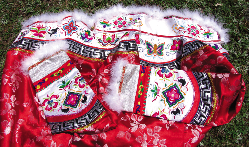 裕固族刺繡裕固族刺繡主要分布在祁連山北麓的肅南裕固族自治縣明花鄉(xiāng)、大河鄉(xiāng)、康樂鄉(xiāng)及皇城鎮(zhèn)的馬營、東灘、北灘。裕固族的刺繡工藝在民族工藝和審美情趣中隱喻著很深的文化內(nèi)涵,充分體現(xiàn)了裕固族人追求美的心理需求。裕固族刺繡工藝就其色彩、花樣、用途而言千差萬別、千姿百態(tài),既符合風(fēng)俗習(xí)慣,審美心態(tài),也是生活情趣的再現(xiàn)。裕固族刺繡是裕固族生產(chǎn)生活中一個非常重要的輔助性、裝飾性手工藝術(shù),它在吸納了中國四大名繡和藏族、蒙古族等民間刺繡精華的基礎(chǔ)上,逐漸形成了自己獨特的風(fēng)格和完整的藝術(shù)體系,具有濃郁的地方特色和民族氣息。其主要特點是內(nèi)容豐富,多以人物、花草、鳥獸、傳統(tǒng)裝飾圖案及十二生肖等為主;構(gòu)圖嚴(yán)謹(jǐn),講究圖案的對稱和自然流暢;針法多樣并注重運(yùn)用剪絨、打結(jié)、鎖邊、圈金、打眼等輔助工序;色彩艷麗明快,但又樸素大方,主要用于服飾裝飾、日常生活用品裝飾。裕固族刺繡藝術(shù)來源于他們的生活,來源于他們自身,與他們的物質(zhì)生產(chǎn)生活方式有著密不可分的聯(lián)系。作為藝術(shù)品,既表現(xiàn)了藏傳佛教的宗教信仰,又具有西部游牧民族的特色,也具有裕固族獨特的文化元素,在中華民族文化寶庫中占有一定的地位。 2013年,裕固族刺繡被甘肅省人民政府列入第三批甘肅省非物質(zhì)文化遺產(chǎn)保護(hù)名錄。