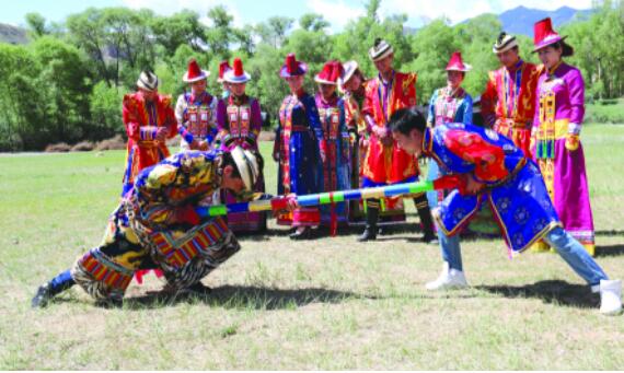 裕固族是我國歷史悠久的民族,與曾經在公元8世紀于蒙古高原建立汗國的回紇以及由漠北遷到河西走廊的回鶻有密切關系。現今的裕固族是以古代回鶻人的一支——黃頭回鶻為主體的民族,是甘肅省特有的三個少數民族(東鄉族、裕固族、保安族)之一。肅南也是全國唯一的裕固族自治縣,境內環境以高山、森林和草原為主,因此裕固族一直保持和延續著古老的逐水草而居、隨季節遷徙的傳統游牧生活。這一重要地理位置和生產生活方式,使裕固族秉承了突厥和回鶻這兩大北方草原游牧文化的傳統,同時在遷徙游牧的歷史長河里,吸納了其他諸多周邊民族文化的元素,形成了自己獨具特色的歷史文化和獨具魅力的民族風情。殘酷的自然環境,使裕固族先祖深知擁有強壯體魄的重要性。為了生存,他們在不斷創造和發展生活技能的同時,也在各種條件下創造和發展著自己的體育項目。他們根據自己的生產條件、環境條件,在草原上開展賽馬、摔跤、大象拔河、爬山、拉棍、射箭、撂拋子等體育比賽。裕固族頂杠子是裕固族最具特點的民間傳統體育項目之一,裕固族語叫“木爾格”。主要分布在今甘肅省西北部河西走廊、祁連山北麓。裕固族頂杠子是裕固族游牧生活中進行娛樂競技的主要形式之一,也是古代裕固族先民軍民一體、崇尚強健體魄的真實反映。頂杠子是集智慧、力量、勇氣于一體的項目。通過頂杠子的練習,不僅能鍛煉手臂、胸部、腰腹部、腿部的力量,使身體結實、健美,還能提高神經系統的靈敏性。因此,頂杠子是一項比較全面的健身運動。它以兩人為一組,以一根長杠為道具開展比賽。比賽一般為不同部位比力三局,勝局多者為贏,反之則輸。第一局,兩人對站,以肩頭頂住杠子的兩頭,用全身力量向前推比力定輸贏;第二局,兩人對站,以腹部頂住杠子的兩頭向前推比力定輸贏;第三局,兩人背對,以兩手握住杠子的兩頭向后推比力定輸贏。比賽時不準在場地挖坑或通過附屬物借力,參賽人員多時,贏家之間以同樣比賽規則爭奪冠軍。從裕固族頂杠子的表現形式來看,既具有傳統體育的文化特性,即規定性、固定性、制約性以及娛樂性、競技性、廣適性、地域性、藝術觀賞性、趣味性等,又具有本民族獨特的文化特征。 2010年7月6日,裕固族頂杠子被張掖市人民政府列入第二批張掖市非物質文化遺產代表性項目名錄。保護單位:張掖市肅南裕固族自治縣裕固族文化研究室