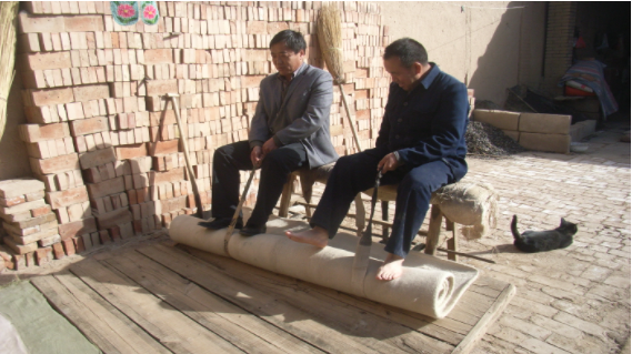 山丹盛產(chǎn)羊毛,洗氈技藝傳承久遠(yuǎn)。氈、氈襖、氈靴、氈帽、毛口袋、帳篷等在過(guò)去農(nóng)村生產(chǎn)生活中極為重要,因此洗氈技藝代代相傳。隨著社會(huì)經(jīng)濟(jì)的發(fā)展,氈及氈制品漸漸退出人們的生活視野,洗氈這一傳統(tǒng)手工技藝也慢慢退出歷史舞臺(tái)。洗氈又叫搟氈,是一項(xiàng)傳統(tǒng)手藝,工具主要有彈弓、竹簾、柳條等;工序?yàn)橄疵椕⒄巍⑾礆帧⒄叀7N類有沙氈、棉氈,其中用秋天的羊毛制成的棉氈最佳。規(guī)格有四六氈(寬4尺,長(zhǎng)6尺)、五七氈(寬5尺、長(zhǎng)7尺)、單人氈、雙人氈等,按顏色可分為白氈、花氈、紅氈、青瓦氈。有的搟氈工匠還能設(shè)計(jì)出各種典雅的圖案,如“紅杏鬧春”“松竹圖”“清水遠(yuǎn)山”等。洗氈工具雖然簡(jiǎn)單,但工序卻很復(fù)雜,尤其是彈洗揉邊等都非常講究技術(shù)。氈搟成了,最后的邊角不用剪刀,只能用手工揉搓,手藝不高的匠人是做不出筆直的棱邊的。為了保護(hù)洗氈這一技藝,山丹縣對(duì)傳承人進(jìn)行生活補(bǔ)助,鼓勵(lì)招徒傳藝,并對(duì)作品進(jìn)行合理改進(jìn),使之適應(yīng)市場(chǎng),將氈品開(kāi)發(fā)成為美化生活的一種工藝品。 2010年7月6日,山丹洗氈被張掖市人民政府列入第二批張掖市非物質(zhì)文化遺產(chǎn)代表性項(xiàng)目名錄。保護(hù)單位:張掖市山丹縣文化館。