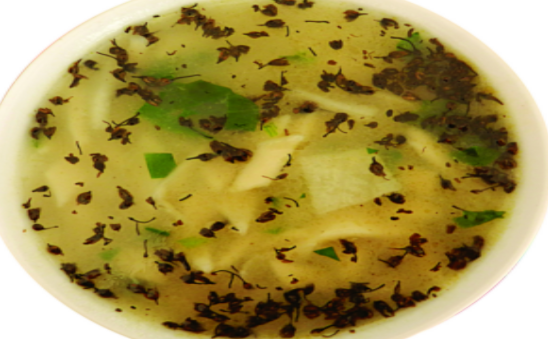 生活在民樂的人們,發現當地生長的一種野生植物羊胡花適合放在飯里面做點綴,是一種非常香的輔料,羊胡花熗面旗便隨之產生。將小麥面用淡鹽水和好,在鍋里加水至沸騰,放入切好的蘿卜片,將和好的面在案板上用搟面杖搟成薄餅后切成菱形狀的小面片,下入鍋里,面煮熟后,用勺子煉好油,將準備好的羊胡花放進勺子里,待羊胡花成黑色狀、溢出香味時潑進鍋里,此時香味撲鼻的羊胡花熗面旗就可出鍋食用了。羊胡花熗面旗是勞動人民在長期的勞動生產、生活中創造出來的,既營養又健康,具有濃厚的鄉土氣息,以味道獨特見長,價格相對低廉,在競爭激烈的餐飲業中占據了一席之地,受到人們的青睞,已成為當地的旅游文化產品之一。 2015年8月13日,羊胡花熗面旗(張掖地方風味小吃制作技藝)被張掖市人民政府列入張掖市第三批市級非物質文化遺產代表性項目名錄。保護單位:張掖市民樂縣文化館。