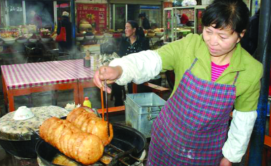 高臺(tái)油糕一般是用小麥粉制成的,而用糯米面制作的油糕風(fēng)味則更勝一籌,既是方便的快餐食品,又是饋贈(zèng)親友和探望病人的禮品。烹調(diào)方法:燙、包、油炸。味型:香甜味、果甜味。原料:糯米粉5.5千克,桂花100克,紅絲100克,白糖2千克,核桃仁200克,面粉(蒸熟)400克,菜油5千克(實(shí)耗1.3千克)。制作工藝:一、燙面。將糯米粉倒入盆里,澆入開水2—2.3千克燙面,用搟杖攪勻,再放入鍋內(nèi),加熱,繼續(xù)攪拌,使之更趨于細(xì)勻潤(rùn)滑,并基本成為熟食。二、拌餡。將核桃仁、桂花、紅絲切碎,和白糖、熟面粉混合一起拌勻。三、炸制。取燙好的面適量放入左手上,拍成窩窩形,將餡15克包入,收口封嚴(yán)。用食指、中指及無名指略壓,使一面有3個(gè)指痕。平底鍋加油,燒至八成熟,將包好的油糕投入,炸至浮起呈金黃色時(shí)撈出即成。風(fēng)味特點(diǎn):色澤黃亮,香潤(rùn)粘甜,大小均勻,風(fēng)味獨(dú)特,老幼皆宜。繼承創(chuàng)新:用此法還可制成糯米五仁油糕、糯米蓮茸油糕、糯米山楂油糕、糯米鮮肉油糕、糯米果肉油糕。高臺(tái)油糕另有一種制作方法:取清水放入鍋內(nèi)燒沸,加入豬油,將面粉倒入鍋內(nèi),用小火將油面搓拌成熟面團(tuán),出鍋放在案上,晾涼,再加涼開水反復(fù)揉搓成軟面團(tuán),即成燙面。白砂糖、黃桂醬、核桃仁、熟面粉等制成黃桂白糖餡。將燙面揪成面劑子,用手拍成片,放入黃桂白糖餡,制成糕坯。經(jīng)炸后,糕面出現(xiàn)薄如蟬翼、白如霜雪的一層氣泡,入口即化,松軟綿潤(rùn),芬芳醇香。目前,高臺(tái)油糕制作技藝為少數(shù)老年人掌握,面臨失傳。主要傳承人有黑泉鄉(xiāng)定安村的王茂龍、永豐村的楊九華等。 2010年7月6日,高臺(tái)油糕(張掖風(fēng)味小吃制作技藝)被張掖市人民政府列入第二批張掖市非物質(zhì)文化遺產(chǎn)代表性項(xiàng)目名錄。保護(hù)單位:張掖市高臺(tái)縣文化館。