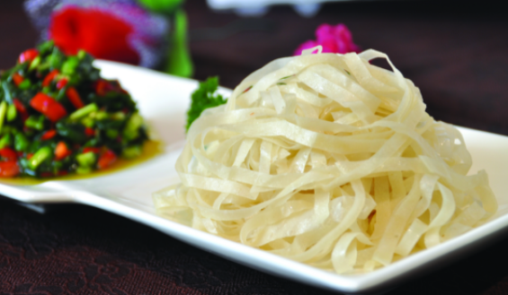 高臺縣地處河西走廊中部,全國第二大內陸河——黑河縱貫全境,自明代以來就是農業生產的理想地域,盛產小麥、水稻等作物,是全國12個商品糧基地之一,與臨澤、甘州等縣區共同成就了“金張掖”的美譽。發達的農業基礎,為飲食文化的興旺發達提供了可能。高臺面筋是高臺縣歷史悠久的地方特色小吃,工藝獨特、味美爽口,為待客佳品,可熱吃,可冷吃,也可晾干儲存,食用時再投入配好的肉湯成為快餐。加工方法為本縣農村少數中老年婦女所掌握,深受四方賓客喜愛。制作方法:采用本地農家自產的面粉,按照1.5千克面粉25克鹽的比例,和面并揉至不沾手為度,稱為“揣面”。將“揣”好的面團投入冷水中反復揉洗,稱為“洗面”。把分離出的面筋團揪成小塊,另化鹽水,分別取干面粉和到一起,揉光后,用瓦盆覆蓋放置片刻,待其行開,用搟面杖搟薄,繃扯于“撇子”上,入鍋蒸熟即成面筋。蒸熟的面筋可直接手抓食用,也可切成細條食用。盤成拳頭狀的小盤晾干后即可儲存。面筋另有一種食用方法,即將洗好的面筋團直接用剪刀剪成小塊,下入滾水(燒開的水)鍋中,同時放入洋芋塊、生姜等輔料,煮熟后即可食用,味道十分鮮美,稱之為“面筋泡”或“黃粉子”。分離出面筋后的淀粉水,除去浮于表層的黃水后,投入鍋內加熱攪拌至糊狀,即可趁熱食用,稱為“熱粉”;亦可冷卻成固體晶狀物后食用,稱為“涼粉”,切成細長條,便是“粉條”。如放在陽光下曬干,就是“粉皮子”,扎成把子后即可儲存。在農忙或過年過節之時,如有親友來訪,為節省時間,當地人常常將面筋和粉皮子一同下入鍋中,配以洋芋、肉塊等,做成一頓美味,稱為“面筋湯”。 2010年7月6日,高臺面筋(張掖風味小吃制作技藝)被張掖市人民政府列入第二批張掖市非物質文化遺產代表性項目名錄。保護單位:張掖市高臺縣文化館。