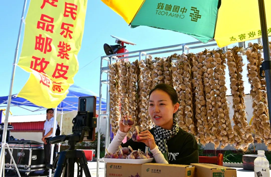 志愿者現場直播銷售洪水鎮特色產品——紫皮大蒜