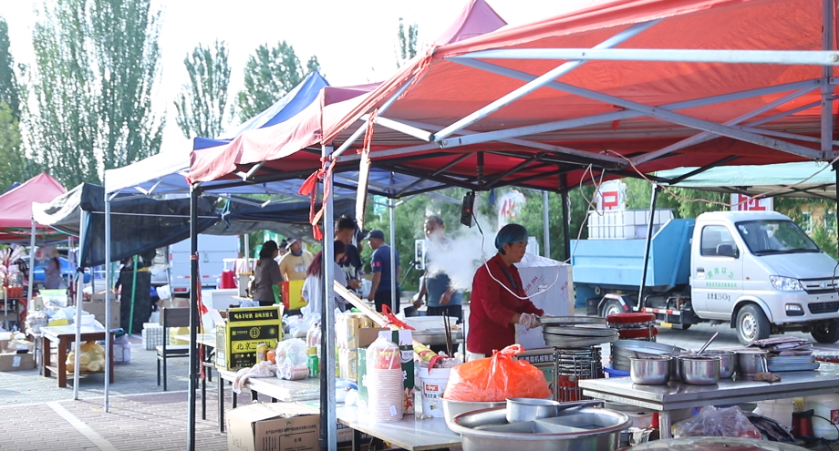 隨著夜幕降臨,“歡聚康樂,HIGH啤一夏”啤酒音樂會逐漸熱鬧起來。在戶外寬敞的空地上,各攤點的桌椅擺放得整整齊齊,大量游客來到這里,點上幾串烤串,暢飲幾杯啤酒,談天說地,不亦樂乎。攤主的叫賣聲、食客的交談聲、歡快的歌聲此起彼伏,各色亮眼招牌燈光斑斕交錯,鄉村的煙火氣也在食客的推杯換盞間被點燃。入夜的康樂篝火熊熊,人們隨著歡快的音樂,手拉手圍成圈,踏著歡快的節奏,在火光中盡情舞動。期間,不少游客也主動參與進來,一起隨著音樂翩翩起舞。熊熊的篝火映紅喜悅的笑臉,歡快的歌聲伴隨如潮的歡呼,大家在歡樂的氛圍中載歌載舞,暢享美好生活。