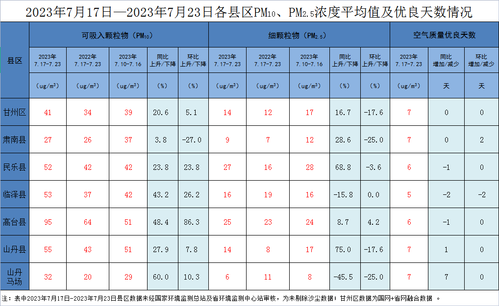 張掖市各縣區(qū)空氣質(zhì)量周報(bào)