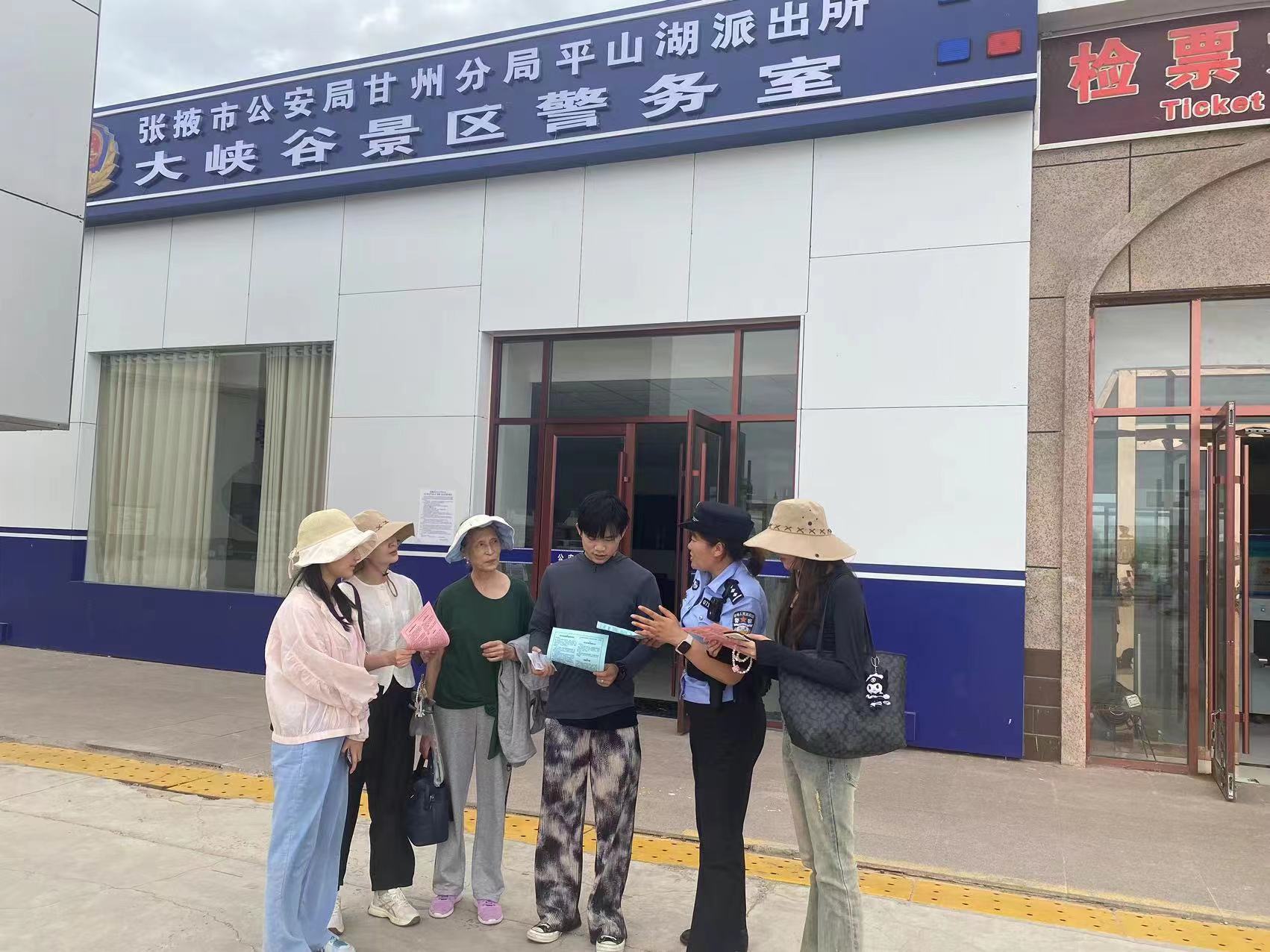 中國張掖網甘州訊 連日來,甘州區平山湖派出所大峽谷警務室立足景區實際,組織景區志愿者、工作人員、民警在維護景區秩序的同時,向游客宣傳、講解典型的“刷單返利詐騙、虛假投資理財詐騙、裸聊”等電信網絡詐騙手段,面對面答疑解惑,普及反詐宣傳知識,讓游客游玩的同時,切實保護好自己和家人的“錢袋子”。