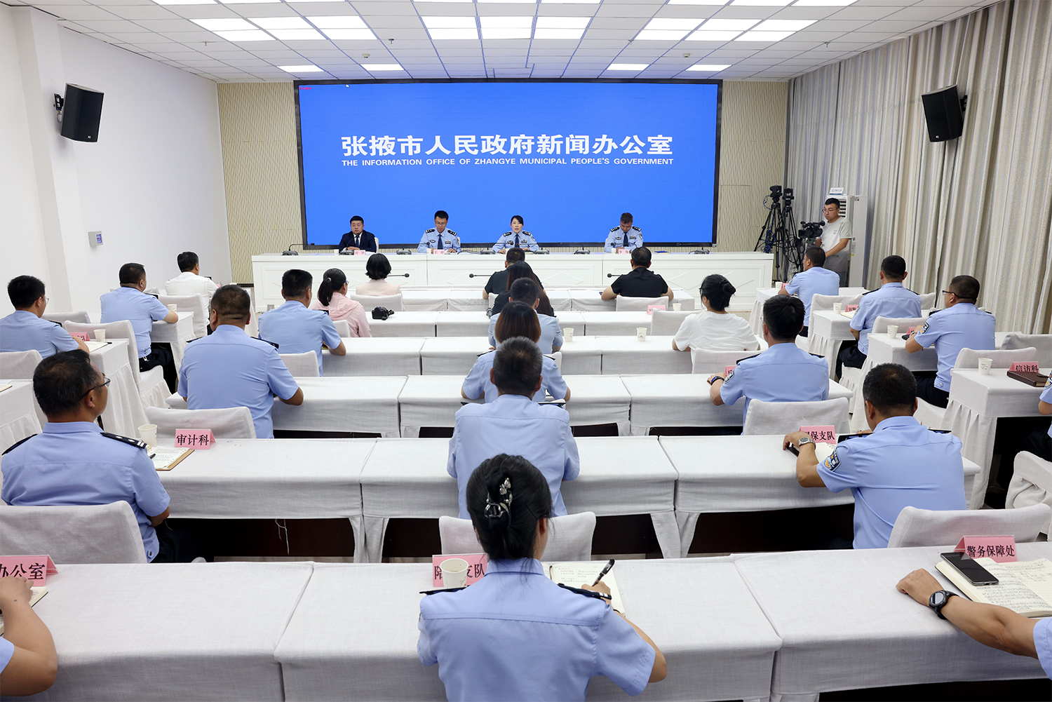 中國張掖網訊 8月25日,張掖市公安局召開學習貫徹黨的二十大精神和習近平總書記重要訓詞精神新聞發布會。通報2023年全市公安機關重點工作任務推進情況,并就夏季治安打擊整治行動和正在推進中的主動創穩行動相關工作回答了媒體記者的提問。