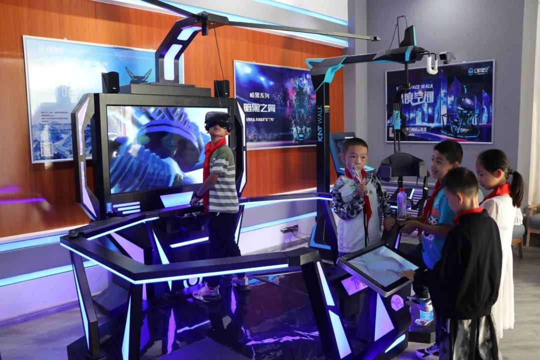 在VR科技館,少先隊員們被這些有趣而又充滿神奇魅力的科學(xué)設(shè)備深深震撼,借助以科技信息化為載體的VR科普平臺和科普設(shè)施,大家戴上VR眼鏡穿越體驗,感受到了在課本上學(xué)不到的壯麗景觀。