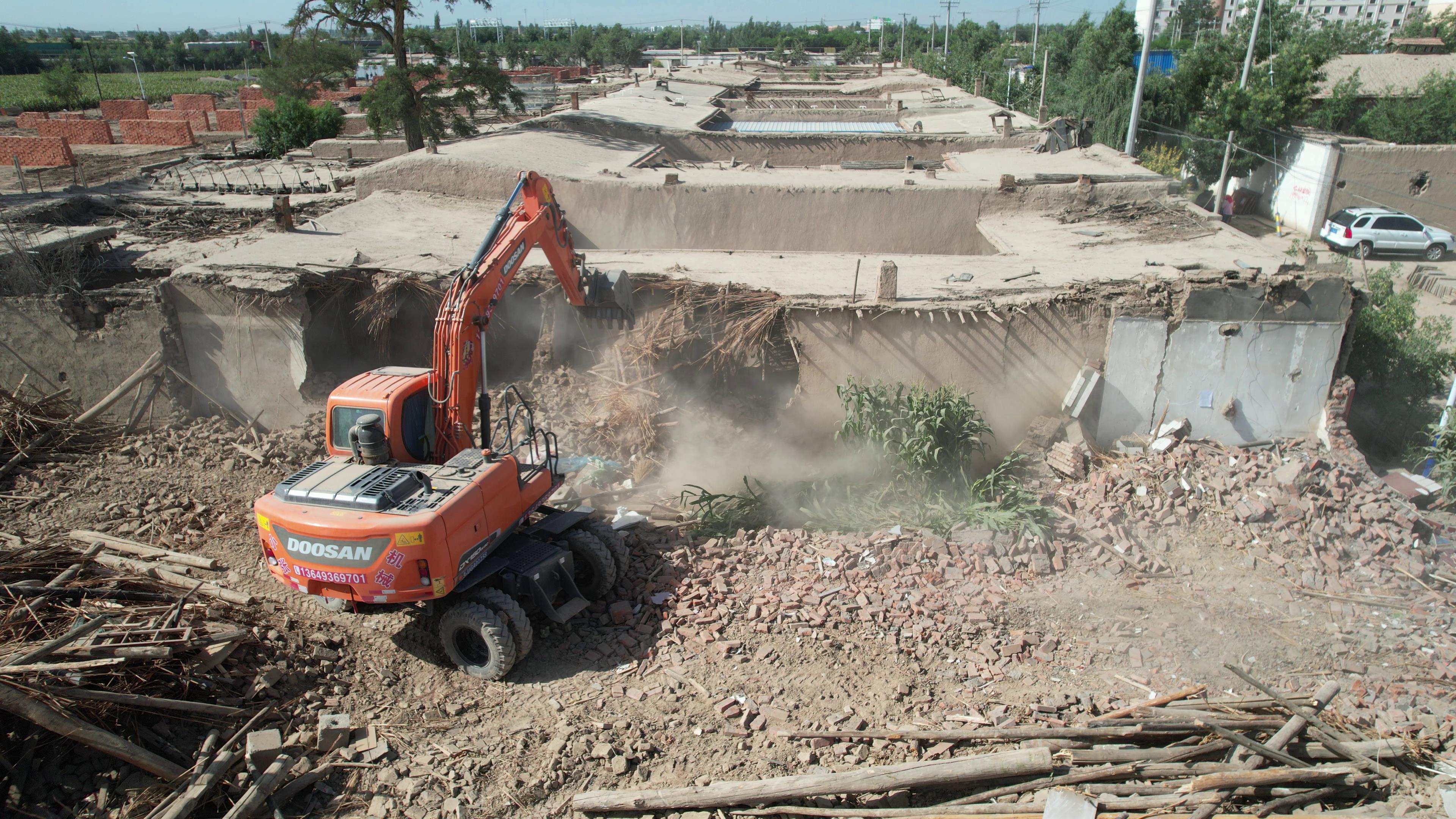 近日,在梁家墩鎮四閘村,大型設備已陸續入場,施工現場工人們分工明確、各司其職,加足馬力開展老舊房屋拆除工作。