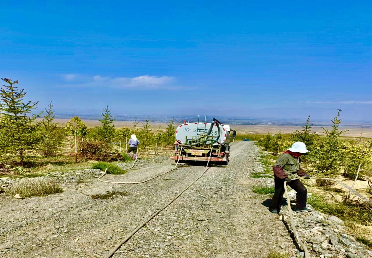 中國張掖網甘州訊 今年入夏以來,甘州區降雨量較少,持續高溫形成干旱天氣,新栽植苗木普遍干旱缺水。為科學應對持續高溫干旱,鞏固生態建設成果,甘州區區林投公司全面開展抗旱灌水保綠行動,為樹木“消暑解渴”,守護綠色“活力”。
